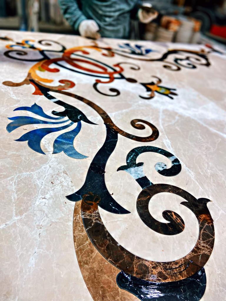 Our unique waterjet designs are meticulously crafted, blending stunning marble varieties, to perfectly complement the look and feel of any space.
